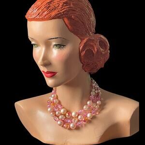 Add a touch of vintage glamour to your jewelry collection with this stunning Coro necklace! This triple-strand collar necklace features a beautiful combination of pink and gold tones, perfect for adding a pop of color and sophistication to any outfit.