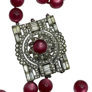 Vintage Coro Rhinestone Broken Moonglow Bead Art Deco Silver Tone Necklace