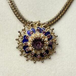 Vintage Coro Rhinestone Starburst Pendant Necklace Whimsigoth Romantic Victorian