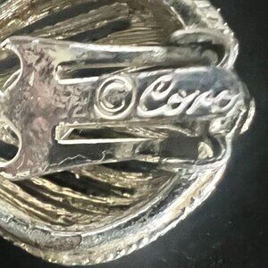 These vintage Coro earrings feature a unique teardrop design with a silver tone finish. The clip-on style makes them suitable for non-pierced ears.