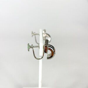 Stylish vintage silver-tone screw back earrings featuring a unique hexagon and circular design. Ideal for adding a touch of retro charm to any outfit.