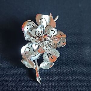 Vintage Coro Silvertone Openwork Flower Pin Brooch