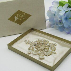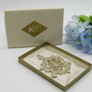Vintage Coro Turtle Pendant Large White Enamel & Gold With Pegasus Logo Box