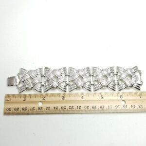 Vintage Coro Wide Panel Silver Tone Bangle Bracelet, Chunky Statement Design