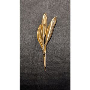 Vintage Coro gold-tone Cow Lily textured petals and leaves Pin Mid-20th century