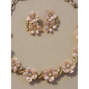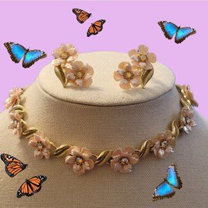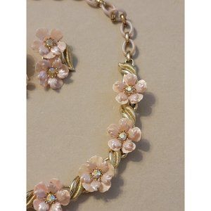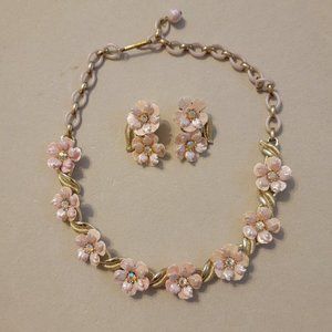 Vintage Coro pink spring flowers necklace and earrings // 1950s ***read***