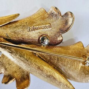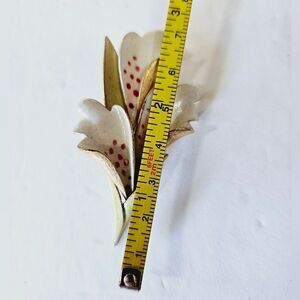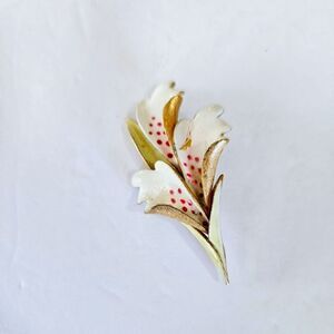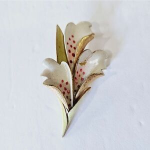 Vintage Corocraft 1940's Signed Gold Tone Enamel Lily Sprig Floral Brooch Pin