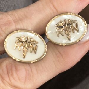 Vintage Correct RN (Registered Nurse ) gold tone & cream oval cuff links