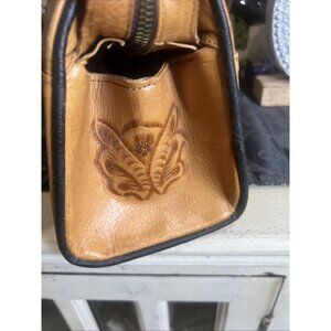 Seller notes: straps are showing some wear but it blends in with the look of the bag. Vintage looking. Some water spots around the bag. General leather wear. Gorgeous design, great Fall bag!