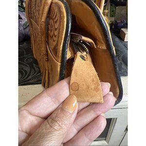 Vintage Corvi Piel Mexico Hand Tooled Aztec Calendar Floral Leather Handbag