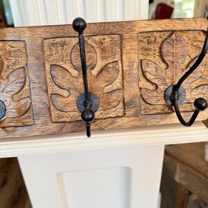 Beautiful coat hanger carved wood and chunky.