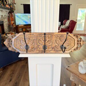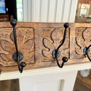 Vintage Cost-Plus Carved Wood Coat Hanger Made in India
