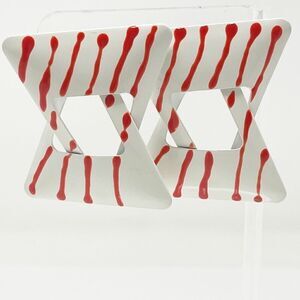 Vintage Costume Jewelry Metal Layered Triangle White Red Post Earrings Geometric