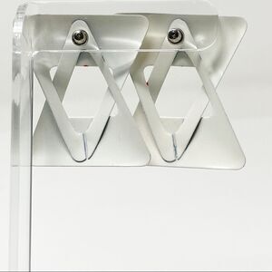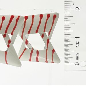 Vintage Costume Jewelry Metal Layered Triangles White Red Post Earrings Geometric