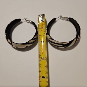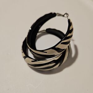 Vintage Costume Jewelry Zebra Print Loop Earrings see measurements