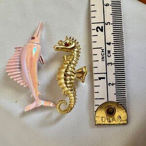Vintage Costume Sea Animal Seahorse Swordfish Estate Pin Brooch Set of 2