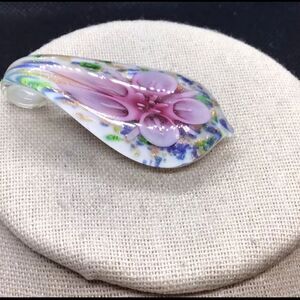 This Vintage Floral Pendant is Costume and measures alittle bit over 2 inches long. This is Beautiful and made of Murano Glass.