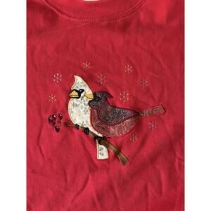 Vintage Cottage Cardinal Birds Christmas Granny Sweatshirt Red XL Grandma Core