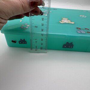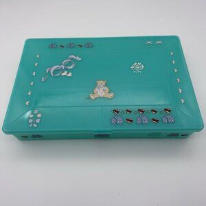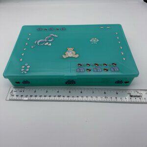 Vintage Cottage Core Embroidery Floss & Thread Organizer Box Teal Plastic Teddy
