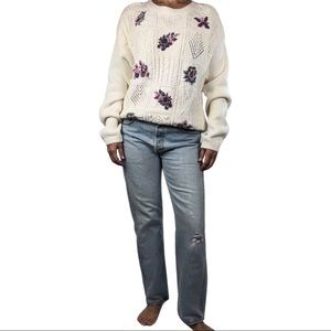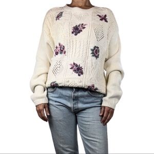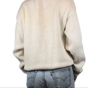 Vintage sweater. Fantastic design. Fair condition. Has some small pulls and shows wear. Some discoloration of the white. Please see photos.I took closeups . Overall, this sweater is a fantastic looking vintage sweater.