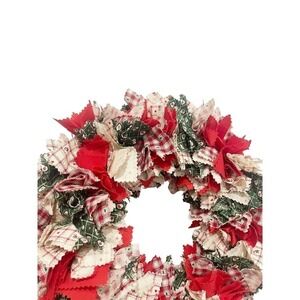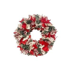 Vintage Cottage Core Holiday Christmas Wreath Tied Fabric Mixed Pattern