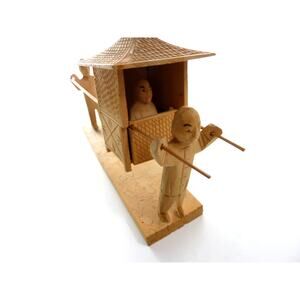 Vintage Cottage Decor Wooden Mini Figure Wood Carving Cart Carry Transport