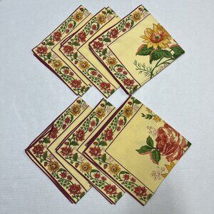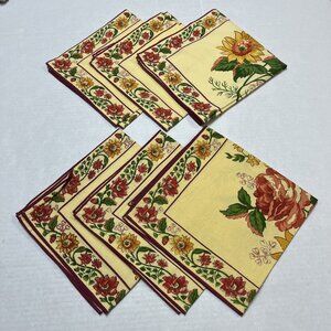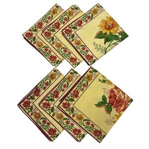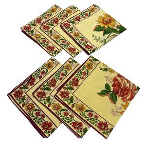 Vintage Cottage Rustic Rose Napkin Set of 6 Gold Yellow Rust Red Green Country