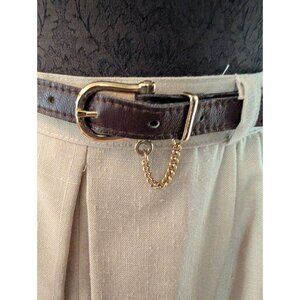 Vintage Cottage Tailor Beige Pleated Skirt With Brown Belt & Gold Chain Accent M