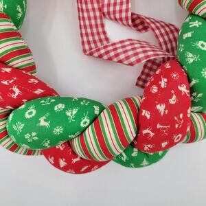 Vintage Cottagecore Christmas Holiday Braided Multipattern Cotton Wreath