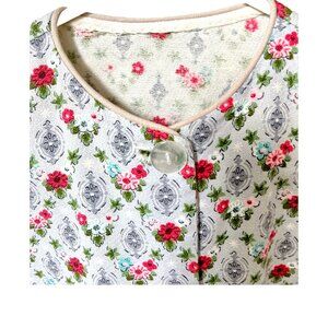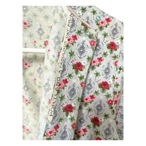 Vintage Cottagecore Cropped Button Floral Print Blue Gray Jacket Top Size Small