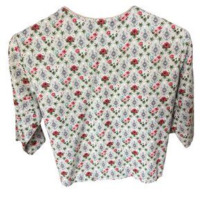 Vintage Cottagecore Cropped Button Floral Print Blue Gray Jacket Top Size Small