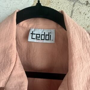 A matching vintage set you’ll want to live in. This Teddi Petite two-piece brings cottagecore charm with floral embroidery, a collared button-down top, and relaxed pull-on pants that fall just above the ankle.