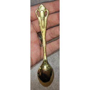 Beautiful cottagecore style Japanese spoon. it's made of stainless steel with a gold tone finish. It has floral elements on the handle, and a small teardrop shaped inlay. The inlay is white with pink, green, and blue floral accents. Great for any rustic or cottagecore kitchen!