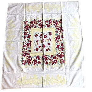 Vintage Cotton Farmhouse Tablecloth Floral Print Yellow Red & Green Floral Flaws