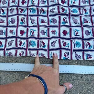 Vintage Cotton Flour Feed Sack cabins trees grapes cherries plums purple teal