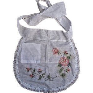 Vintage Cotton Handmade Crossstiched Half Apron w/ 3 Coordinating Kitchen Towels