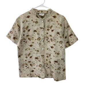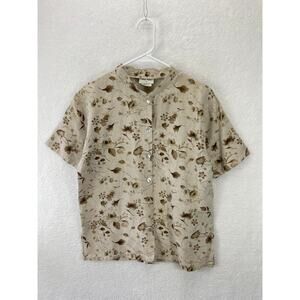 Vintage Cotton Studio Linen Shirt Men’s S Beige Button Up Made in USA Casual
