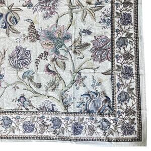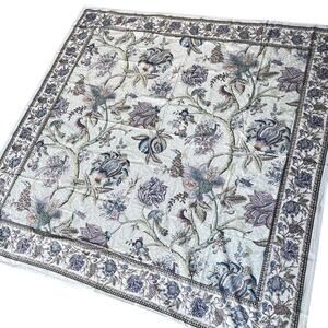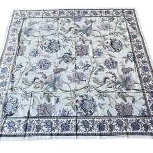 Vintage Cotton Tablecloth Jacobean flowers motif blue sage & white square cloth