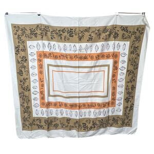 In Pre-owned Condition. see photos for an accurate representation of the Condition of the Vintage Cotton Tablecloth Mid Century Leaf Print Red Orange 56x52