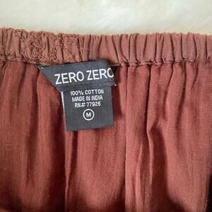 Super cute 100% cotton chocolate brown vintage midi length skirt with an elastic waistband and brown floral embroidery by brand- Zero Zero. Size medium. Measurements in photos.