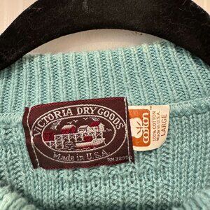 Vintage Cotton Victoria Dry Goods Blue Crew Neck Pullover Sweater - Size Large