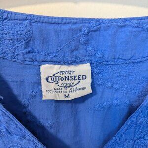 Vintage Cottonseed Button Down Shirt Short Sleeve Boxy Crop Blue Color Boho 1990’s Lagenlook
