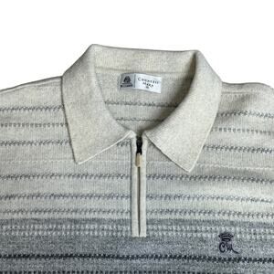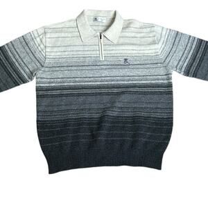 Vintage Countess Mara Collared Zip Striped Ombre Wool Blues White Sweater XL