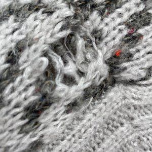 Hole in the shoulder, see photos. Could easily be stitched closed or put more holes in it for a grunge look. A bit of pilling to the knit