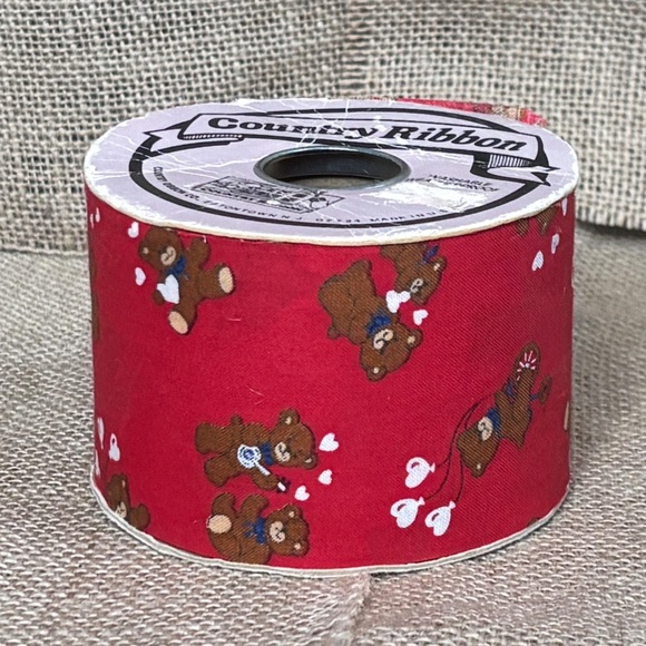 Vintage Country Ribbon Teddy Bears Love Hearts Red Fabric Ribbon Valentines Day