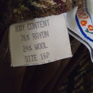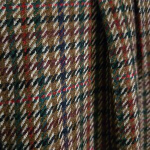 Vintage Country Sport David Smith plaid pants in a brown, red, and green wool blend. Fully lined with pockets, size 16P. Perfect for a classic, retro look.