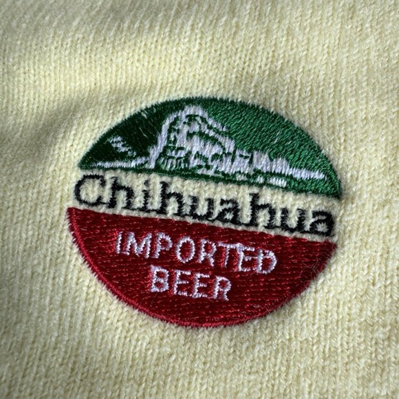 Vintage Country Squire Soft Acrylic Chihuahua Beer Yellow V Neck Sweater Size XL