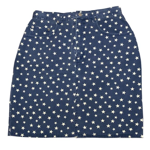 Vintage Country Store Blue Denim Star Print Skirt Size 10