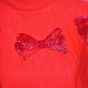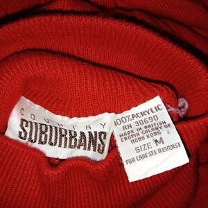Vintage Country Suburban Red Mock Turtleneck Beaded Bow Sweater Sz M