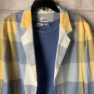 Vintage Country Suburbans Plaid Lightweight Blazer Shirt Blue Sweater Size 12